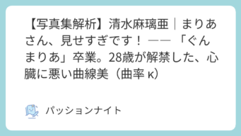 写真集 【写真集解析】清水麻璃亜|まりあさん、見せすぎです! ―― 「ぐんまりあ」卒業。28歳が解禁した、心臓に悪い曲線美(曲率 κ)