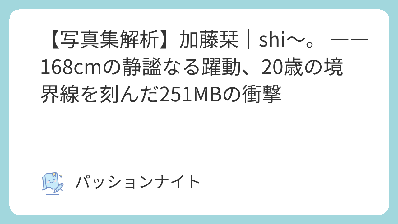 【写真集解析】加藤栞|shi〜。 ―― 168cmの静謐なる躍動、20歳の境界線を刻んだ251MBの衝撃